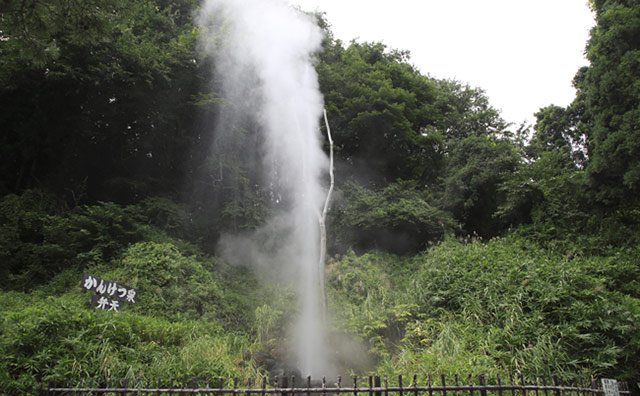 鬼首温泉の特徴は、天然の間欠泉(かんけつせん)があることです。間欠泉とは、一定の周期で水蒸気や熱湯を噴出する温泉のことをいいます。間欠泉自体はほかの温泉地でも見られるものですが、なかには人工的に圧力をかけて吹き出させているものも。自然の力で大地から噴き出す鬼首間欠泉は、迫力満点です。