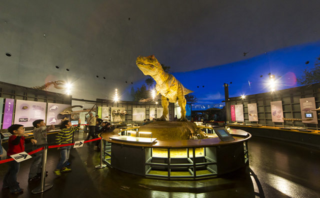 福井県立恐竜博物館は恐竜の世界、地球の科学、生命の歴史という3つのエリアで構成されていて、恐竜そのものだけでなく恐竜を通して地球の歴史を知ることができます。44体もの骨格標本を始め、ダイナミックな展示が多数行われているので、大人から子供まで楽しみながら恐竜のことを学べます。