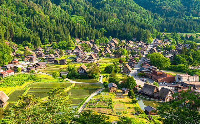 岐阜県北部、大野郡に位置する白川郷は、大小114棟の合掌造りからなる集落です。合掌造りとは、木の梁を山形に組み合わせて建てられる日本独自の建築様式をいい、歴史文献や昔話でも登場する“日本らしい家屋”です。