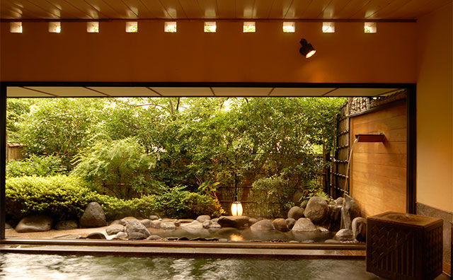空間デザイナーの辻村久信氏が手掛けた「光の露天風呂」、達磨山に落ちる夕日を眺められる「夕焼けの露天風呂」など、魅力的なお風呂が多くあります。敷地内には四季折々の自然を楽しめる大庭園もあり、お風呂も自然も楽しみたい人におすすめです。