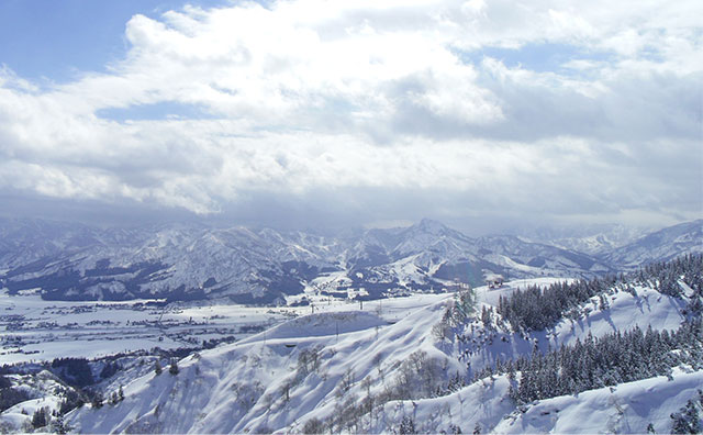 高津倉山頂(標高1,181m)から山麓にかけて、ゲレンデは3つのエリアに分かれ、全16のコースを楽しめます。