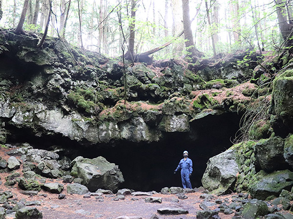 西湖からほど近い、青木ヶ原樹海に位置する横穴型の洞窟です。高さ5.4メートルの洞窟入口から、洞窟内を回って戻ってくるまでの総延長は201メートル。道中の最高部は8.7メートルの高さがあります。平均温度は3度と低く、洞窟内では夏でも溶けることのない氷柱のほか、溶岩池などを見ながら散策できます。洞窟探検の休憩には、付近にある森の駅「風穴」へ立ち寄って、軽食やおみやげ探しを楽しみましょう。売店では山梨や静岡の銘菓、地酒、甲州ワインなどの取り扱いがあります。