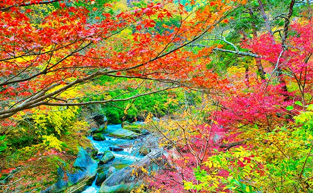 山梨県に位置する「昇仙峡(しょうせんきょう)」は、豊かな自然に包まれた清流が美しく、季節ごとに異なる魅力にあふれています。渓谷を染める紅葉が眩しい秋には特に多くの方が訪れる人気の観光名所です。