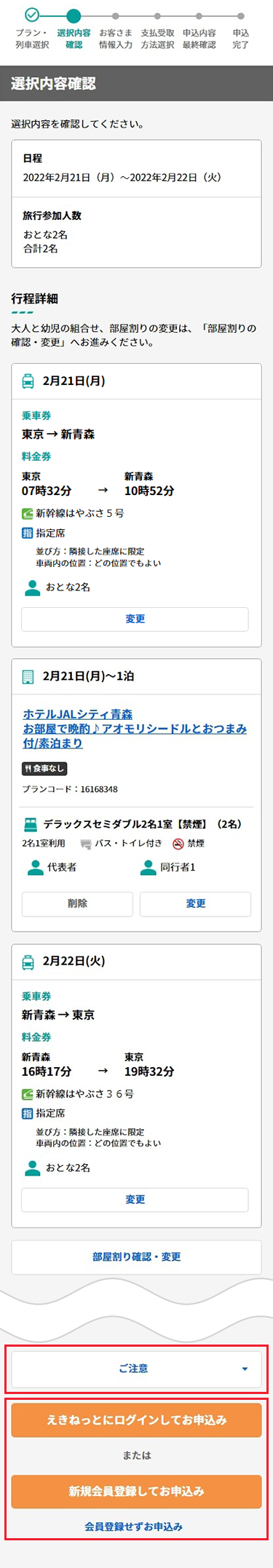 画面の案内に沿って、『えきねっとにログインしてお申込み』、『新規会員登録してお申込み』、『会員登録せずお申込み』のいずれかをタップします。